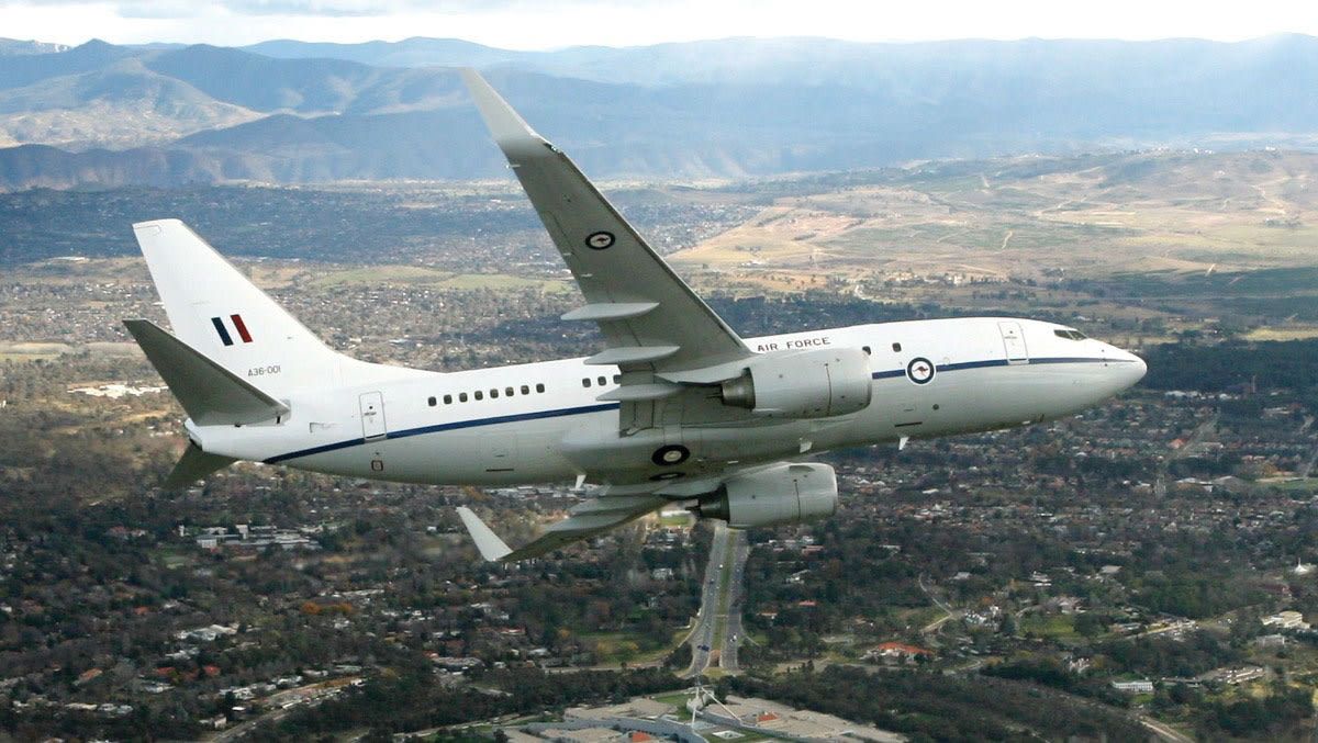 Air to Air of A36-001 Boeing 737 BBJ over Canberra (LACW Sonja Inderwisch)