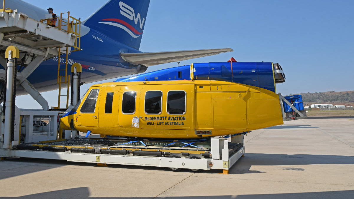 Onboard the 747 were six Bell helicopters, including a mix of Bell 214B and Bell 214STs. The Queen of the Skies was met in Australia with a ceremonial water salute performed by two fire engines on the runway.