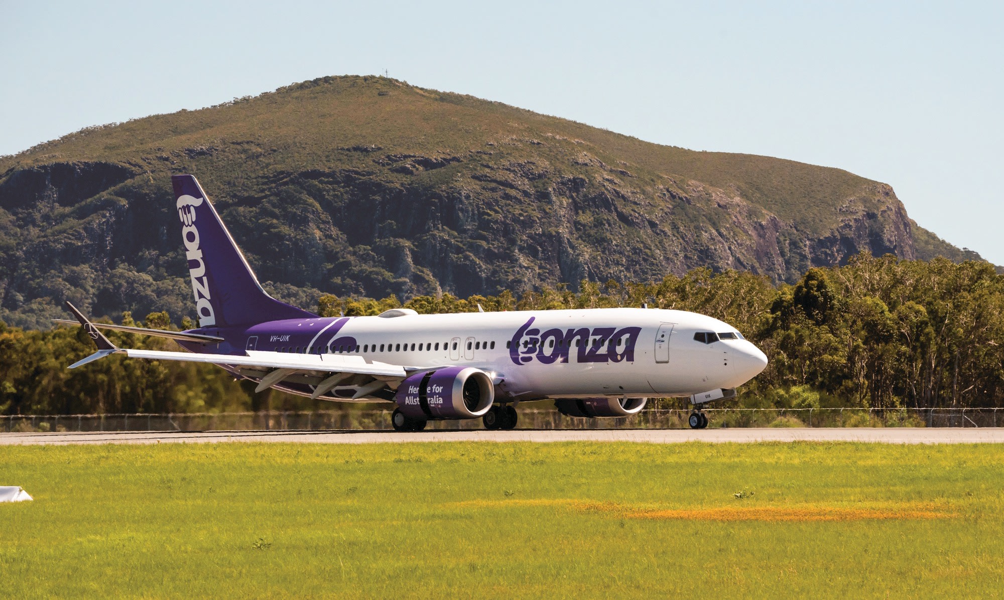 Bonza’s second 737 MAX, VH-UIK, touches down on the Sunshine Coast